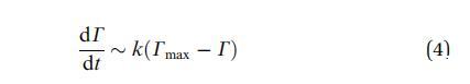 當系統接近飽和時,G(t) 的下降必須 隨著表面變得擁擠,請減速。 的濃度 吸附在表面下方,然后失去平衡 與吸附的物種和動力學受到限制 吸附屏障。 然后一級動力學過程導致:
