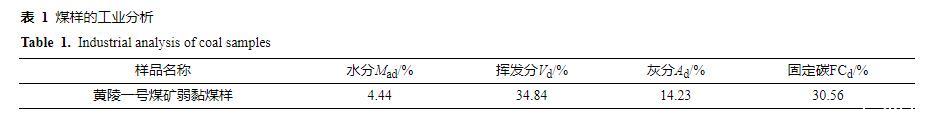 將EMI原液稀釋至質量分數分別為0.1%、0.2%、0.4%、0.6%、0.8%、1.0%、2.0%、4.0%、6.0%、8.0%的混合溶液。實驗煤樣選取黃陵一號煤礦弱黏煤樣,煤樣工業分析結果見表1。在制備煤塵樣品時,根據有關文獻對黃陵一號煤礦綜采工作面煤塵粒徑分布進行檢測,并結合國際標準化組織對粉塵粒徑的定義,以及實驗室制備條件,去除煤塊外表皮,使用破碎機對煤心破碎60 s,用160、200、300、400目標準工業篩對煤粉進行篩分,共篩分出0.075~0.096、0.048~<0.075、0.038~<0.048、<0.038 mm共4個粒度范圍的樣品進行實驗,其中煤塵粒徑與煤樣編號見表2。煤樣制備完成后,將其放入80℃的真空干燥箱,真空干燥8 h后密封保存以備實驗使用。