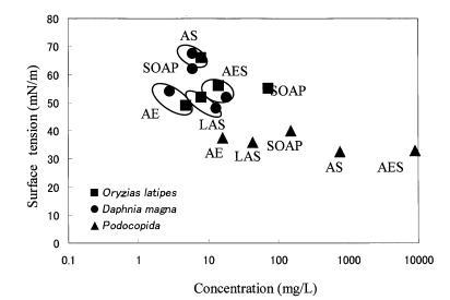 水稻和大水蚤的gtox值很大 因表面活性劑的種類而異。 結果,很明顯,一個 表面活性劑的急性水生毒性不能簡單地 與表面活性劑溶液的表面張力有關, 忽略表面活性劑的種類。