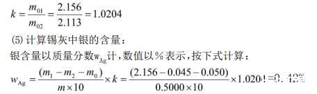 銀含量以質量分數wAg計,數值以%表示,按下式計算: