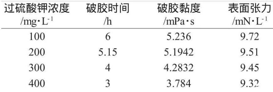 過(guò)硫酸鉀、K2S2O8對(duì)壓裂液破膠性能與表面張力的影響——結(jié)果與討論、結(jié)論