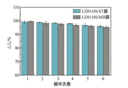 圖7兩種不同的LDH-HS/染料LB膜的循環穩定性表征