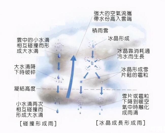 ●那么直徑只有0.0001~0.0002毫米的小水滴是如何把自己的直徑增加到100多萬倍以上的呢!主要依靠兩個手段: