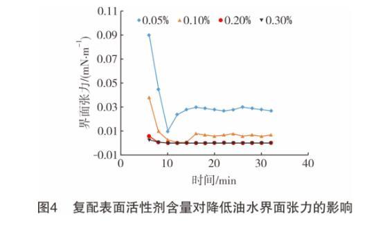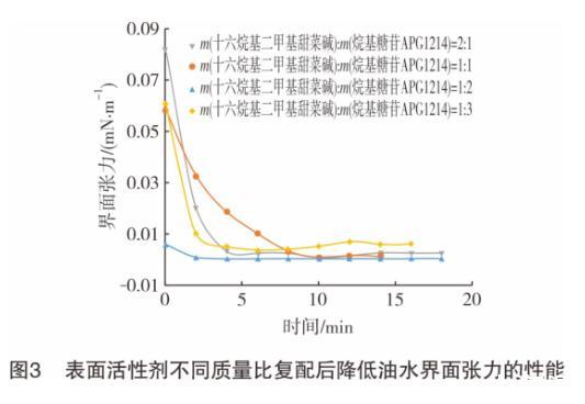 2.3復配表面活性劑降低油水界面張力性能