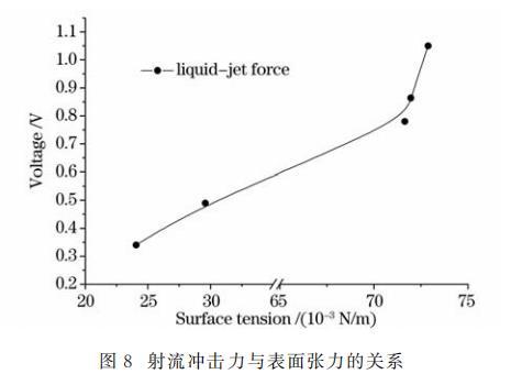 實驗研究了液體表面張力對固壁近旁空泡生長和潰滅過程的影響。通過研究液體表面張力對空泡最大和最小泡半徑的影響,得出表面張力減緩空泡膨脹過程的結(jié)論;此外,通過分析不同張力液體中靶材所受射流沖擊力的大小,得出表面張力增加射流沖擊強(qiáng)度,產(chǎn)生較大的空蝕效應(yīng)的結(jié)論。該研究成果不僅可以促進(jìn)空化研究的深入,從而避免空泡可能帶來的危害,同時也為合理利用空化現(xiàn)象提供參考。