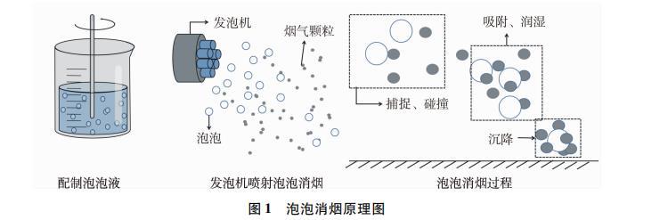 用BZY-201自動表面張力儀測定發(fā)泡液的表面張力;用PH818酸堿檢測計測量發(fā)泡液的pH值;用NDJ-1S數(shù)顯黏度計傳感器檢測發(fā)泡液的黏度;采用改進Ross-mile法測定發(fā)泡液泡沫性能;用CCZ1000濃度測量儀(蘇州億利安機電科技有限公司)測量煙氣濃度,現(xiàn)場直接讀數(shù),恒流取樣,測量僅與被測介質(zhì)的質(zhì)量有關,不受顆粒的粒徑、成分、顏色及分散狀態(tài)等因素的影響。基于性能分析選配出具有良好發(fā)泡性和穩(wěn)泡性的二元發(fā)泡液。