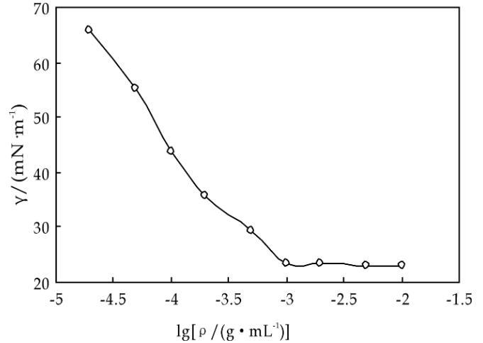 FSS的質量濃度(ρ)對其在水中的表面張力(γ)的影響如圖2所示。