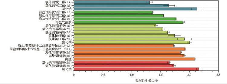 在實驗室中通過吸濕串聯(lián)差分電遷移率分析儀測量給定RH下的粒徑與干粒徑的比值,以通過吸濕性生長因子來量化吸濕性。最近許多研究關(guān)注到表面活性物質(zhì)對顆粒吸濕性的影響。圖4總結(jié)了當前一些研究中量化的表面活性物質(zhì)對SSA模擬物吸濕性的影響。
