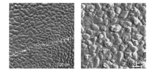 為了進(jìn)一步觀察表面活性素膠束溶液的形態(tài),我們還進(jìn)行了冷凍刻蝕實(shí)驗(yàn)。圖5是表面活性素surfactin-C13和~C16溶液的冷凍刻蝕電鏡照片,表面活性素溶液濃度為4×10-5mol·L-1.
