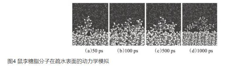 圖3鼠李糖脂分子在親水表面的動力學模擬