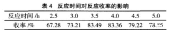 表4反應(yīng)時(shí)間對(duì)反應(yīng)收率的影響