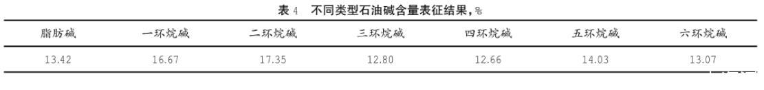 表4不同類型石油堿含量表征結(jié)果,%