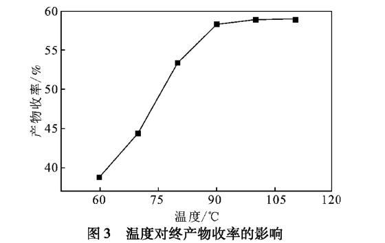 2.2.2終產物合成條件優化在N,N-二(3-氯-2-羥基丙烷)丙二胺二乙酸鈉與十二胺的反應過程中,以蒸餾水為溶劑,氫氧化鈉溶液為敷酸劑,采用單因素分析法,考察了反應物投料比(摩爾比)、反應溫度、時間對終產物GAC-312收率的影響。