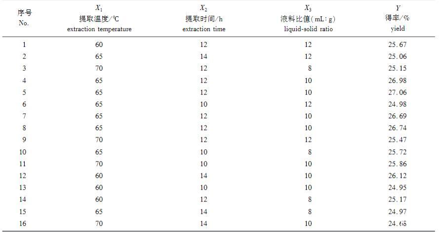 根據(jù)P值大小可分析各因素對(duì)肥皂莢皂苷得率的影響程度,因此由P值可知:PX3>PX2>PX1,可以得到各因素對(duì)皂苷得率的影響程度為X1(溫度)>X2(時(shí)間)>X3(液料比),即溫度對(duì)皂苷得率影響最大,時(shí)間次之,而液料比的影響最小。