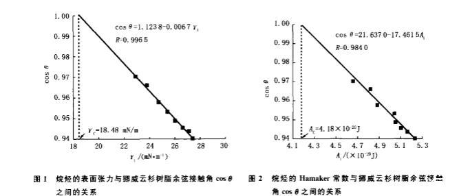 2.2烷烴的Hamaker常數與挪威云杉樹脂余弦接觸角的關系