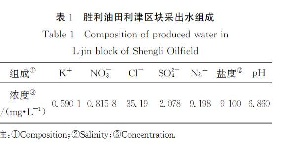 實(shí)驗(yàn)試劑:葡萄糖、檸檬酸鈉、酵母粉、KH2PO4、(NH4)2SO4、MgSO4·7H2O、乙酸乙酯為分析純,購自國藥集團(tuán)化學(xué)試劑有限公司;正己烷為優(yōu)級純,購自Merck公司;二氯甲烷為優(yōu)級純,購自B&J公司;正構(gòu)烷烴混合標(biāo)準(zhǔn):C8—C40包含異構(gòu)烷烴姥鮫烷和植烷,購自Accustandard公司;層析硅膠(100~200目)及硅膠層析板購自青島海洋化工廠;原油采集自中國石化勝利油田有限公司利津區(qū)塊;降解實(shí)驗(yàn)用水根據(jù)勝利油田利津區(qū)塊采出水組成配置(見表1),采出水中pH、鹽度用多參數(shù)儀(Manta3.0,Eureka,美國)測定,K+、NO-3、Cl-、SO2-4、Na+等離子依據(jù)SY/T5523—2016《油田水分析方法》中給出的檢測方法檢測。