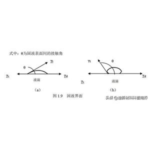 不同的液體在同種固體表面上,得到不同的接觸角。接觸角小的液體表面張力小。接觸角的大小衡量著固體表面與液體之間的潤(rùn)濕性。圖1.9(a)中的接觸角小,表示固液間的潤(rùn)濕性好。而圖1.9(b)中的接觸角大,表示固液間的潤(rùn)濕性差。