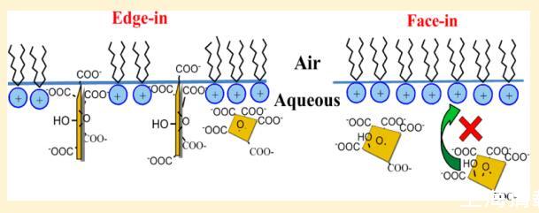 氧化石墨烯 (GO) 已證明 在生物醫(yī)學(xué)領(lǐng)域的各種有前途的應(yīng)用。 但 關(guān)于 GO 如何與細(xì)胞膜相互作用的信息或 模型系統(tǒng)仍然極其有限。 也是未知數(shù) GO 在與脂質(zhì)相互作用時(shí)會(huì)自我定向。 在這項(xiàng)研究中, Langmuir 單層技術(shù)應(yīng)用于空氣- 研究水/水界面的性質(zhì)和方向 GO 和脂質(zhì)模型之間的相互作用。 五脂 (DODAB、DSEPC、DSPC、DSPA 和 SA)具有相同的 18-碳烷基鏈但不同的電荷頭基被有意選擇以使可能的相互作用合理化。 實(shí)驗(yàn)結(jié)果表明,這種相互作用是由極性頭部基團(tuán)和 GO 之間的靜電相互作用控制的。 GO 可以摻入帶正電荷的脂質(zhì) DODAB 和 DSEPC 的單層,但不能摻入中性或負(fù)電荷的脂質(zhì) 帶電脂質(zhì)(DSPC、DSPA 和 SA)。 當(dāng) GO 被注入到帶正電荷的單層下面的亞相中時(shí) 脂質(zhì) DODAB 和 DSEPC,觀察到不同的表面壓力行為。 “edge-in”而不是“edge-in”的方向模型 提出了“face-in”來(lái)解釋GO對(duì)DODAB單層的吸附。