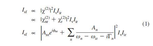 我們的VSF光譜設(shè)置已經(jīng)在前面詳細(xì)描述過(guò)。51簡(jiǎn)言之,我們采用了一種再生放大鈦寶石系統(tǒng)(Legend,Coherent,Inc.),該系統(tǒng)經(jīng)過(guò)優(yōu)化,可用于生產(chǎn)鈦寶石≈100fs脈沖,中心波長(zhǎng)為800nm,帶寬為12nm;使用商用光學(xué)參量放大器和差頻產(chǎn)生裝置(TOPAS,light Conversion,立陶宛)將800 nm光的1 mJ/脈沖用于產(chǎn)生可調(diào)諧的中紅外脈沖,而使用一個(gè)或兩個(gè)標(biāo)準(zhǔn)具(用于聚焦于CH拉伸的測(cè)量)將0.5 mJ的光譜變窄。在產(chǎn)生IR和800 nm光譜變窄后,兩束光束都通過(guò)半波片和偏振器,并以相對(duì)于表面法線(分別為IR和可見(jiàn)光)40°和35°的反射幾何結(jié)構(gòu)撞擊樣品。采樣后,過(guò)濾掉所有剩余的800 nm光,將VSF信號(hào)聚焦到光譜儀(Acton Instruments)中,在光譜儀中通過(guò)光柵將其分散,并聚焦到電子倍增電荷耦合器件(emCCD)攝像機(jī)(牛頓和或)上。本研究中報(bào)告的所有光譜均在ssp偏振條件下收集(s偏振SF、s偏振可見(jiàn)光、p偏振紅外)。所有測(cè)量均在21.5°C下進(jìn)行。