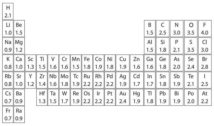 當(dāng)電負(fù)性差異的值為0.5~2.0之間,原子間為絕對(duì)極性共價(jià);