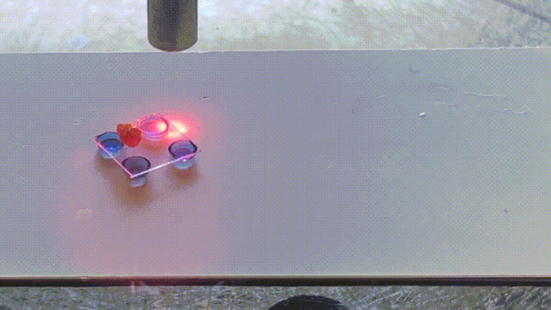 為解決這些挑戰,香港大學王立秋教授研究團隊提出了一種無污染的光電微流控技術,通過把光熱薄膜、熱釋電晶體和超疏液涂層三種功能材料整合在一起,僅用單束光即可移動、切割、融合、分配任意液滴,不需要復雜的微納加工或電極,就可以精確操控表面張力18.9-98.0mN/m、體積1nl-1000ul的任意液體而沒有液體殘留,不僅解決了現有數字微流控平臺上的蛋白質等生物分子易于吸附的問題,還能利用光束精準遙控帶有四個液滴輪的載貨機器人作為貨物搬運工實現對微小固體的傳輸。該技術以題為“Photopyroelectric microfluidics”的論文發表在《Science Advances》上,香港大學王立秋教授和唐欣博士為論文的通訊作者,李威博士為第一作者。