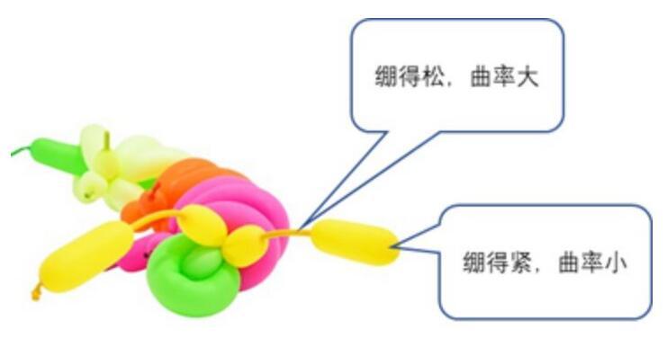 氣球內(nèi)部的氣體壓力處處相等,因此,氣球內(nèi)外的壓差是一個(gè)常數(shù)。但是,接觸過這種氣球的人都有一個(gè)經(jīng)驗(yàn),就是粗的地方繃得緊,而細(xì)的地方繃得就不那么緊。也就是說,在起球不同的地方,皮膜的張力是不同的,如上圖所示。那么問題就來了,繃得緊的地方和繃得松的地方,產(chǎn)生的壓力差卻是相等的,這是為何?
