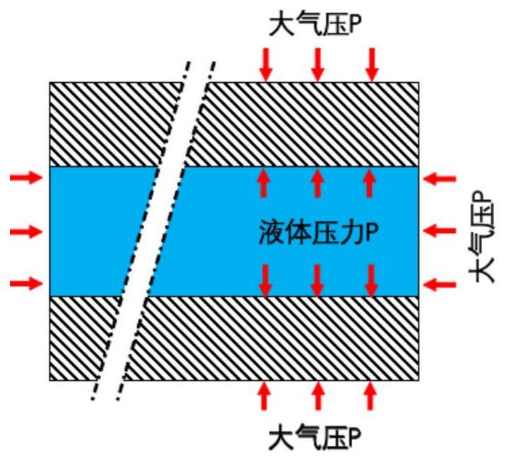 也就是說,由于帕斯卡原理,縫隙中的水也會(huì)將大氣壓傳遞到兩片玻璃的縫隙內(nèi)部。大氣壓的作用效果并非是「向內(nèi)」擠壓兩片玻璃,因?yàn)樵诳p隙內(nèi)部同樣存在著壓力。