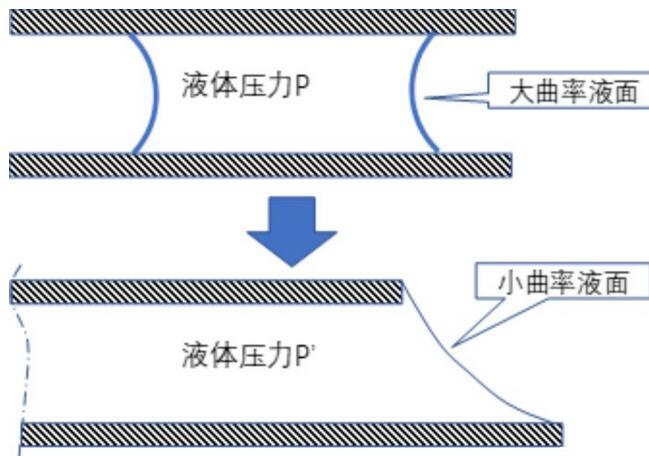 而這里有一件非常關(guān)鍵的事請(qǐng),就是由于表面張力的存在,彎曲的表面就會(huì)在兩側(cè)形成壓力差。