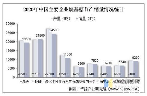 2020年中國主要企業烷基糖苷產銷量情況統計