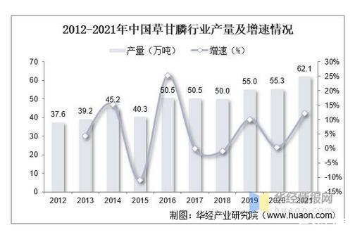 2012-2021年中國草甘膦行業產量及增速情況