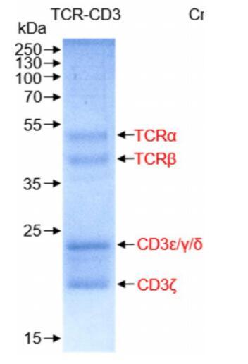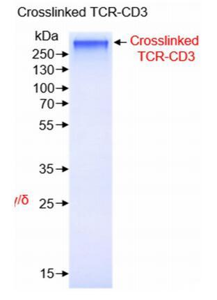膜蛋白復合體TCR-CD3交聯后進行凝膠過濾分子篩層析,進行SDS-PAGE實驗,發現得到比較純的復合體。