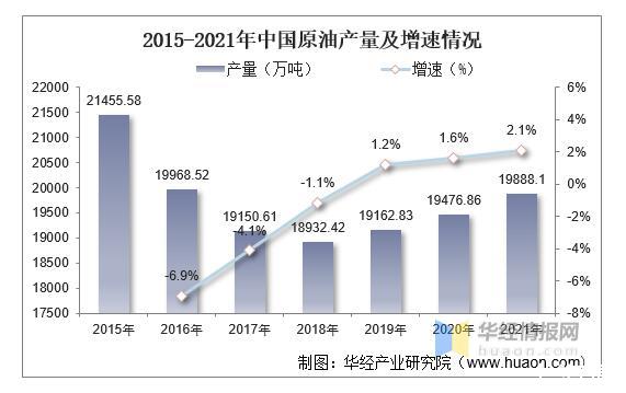 2015-2021年中國原油產(chǎn)量及增速情況