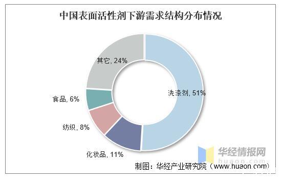 中國表面活性劑下游需求結(jié)構(gòu)分布情況