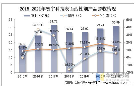 贊宇科技集團股份有限公司是專業(yè)從事表面活性劑、油脂化學(xué)品研發(fā)制造和洗化產(chǎn)品代加工的高新技術(shù)企業(yè)。長期以來,公司憑借先進(jìn)的理念、科學(xué)的管理以及技術(shù)和人才的優(yōu)勢,堅持自主創(chuàng)新,走科技成果產(chǎn)業(yè)化的發(fā)展道路,現(xiàn)已成為國內(nèi)研究和生產(chǎn)表面活性劑的龍頭企業(yè)之一。據(jù)資料顯示,2021年公司表面活性劑產(chǎn)品營收為30.99億元,同比增長5.98%,毛利率為14.41%。