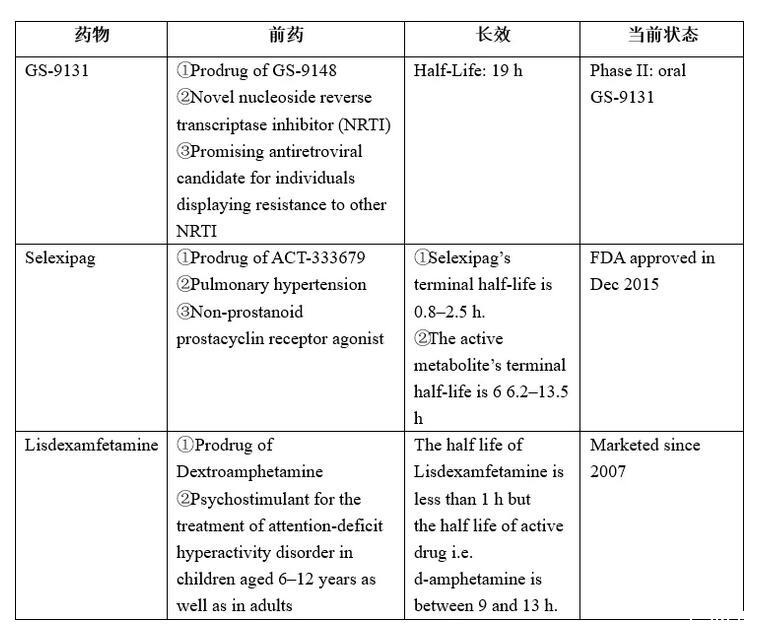 前體藥物是活性藥物分子的無活性或活性較低的生物可逆轉衍生物,在產生藥理作用之前,需要經過酶或生物轉化。前藥策略提高了許多分子的性能,它有助于增強口服給藥后的藥物吸收以及穩定性。前藥在市場中一直占據著一席之地,而且發展迅速,以下為FDA批準的一些長效前藥: