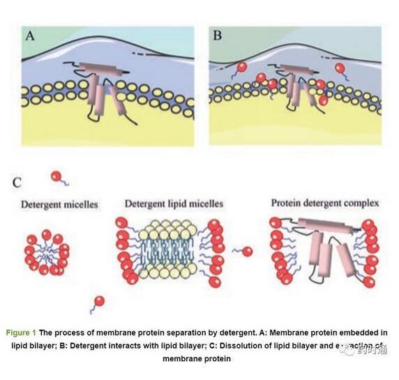 盡管新型洗滌劑在一定程度上提高了分離純化過(guò)程中MPs的穩(wěn)定性,但新舊洗滌劑都有一些共性的缺陷[28]:①對(duì)于未知性質(zhì)MPs的分離、純化和穩(wěn)定的洗滌劑選擇,需要進(jìn)行廣泛篩選;②洗滌劑以形成膠束的形式分離純化MPs,常常會(huì)導(dǎo)致MPs失去與脂質(zhì)和其他蛋白質(zhì)的天然相互作用;③穩(wěn)定分離MPs效果好的洗滌劑有時(shí)會(huì)干擾下游應(yīng)用。因此,無(wú)法預(yù)測(cè)哪種洗滌劑對(duì)給定的蛋白質(zhì)最有效,需要通過(guò)反復(fù)實(shí)驗(yàn)來(lái)確定。