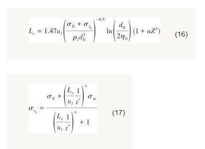 式中,η和η0分別為射流表面波動振幅和初始振幅,m。假設(shè)表面波振幅發(fā)展至射流半徑時,射流發(fā)生破裂。因此,射流破裂長度可以表示為[9]: