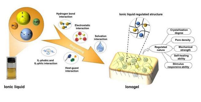 圖2.離子液體調控離子凝膠的結構和性質的示意圖