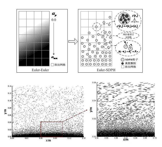 為解決現(xiàn)有模型和算法在求解氣-粒兩相流動問題遇到的不足,基于顆粒動力學(xué)模型,通過增加SPH粒子所表征的顆粒的材料屬性,推導(dǎo)SPH粒子屬性與顆粒屬性間的關(guān)系式,將SPH改造成適于離散相求解的SDPH方法,建立SPH粒子與真實顆粒間的一一對應(yīng)關(guān)系;在此基礎(chǔ)上,分別采用SDPH方法和FVM對TFM模型中的離散相和連續(xù)相進行求解,推導(dǎo)SDPH和FVM離散方程組,搭建SDPH與FVM耦合框架,實現(xiàn)SDPH-FVM耦合算法流程。