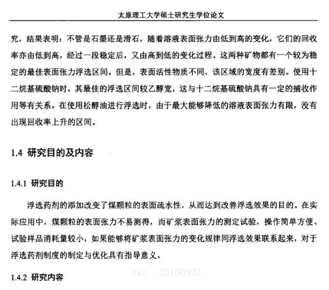 【摘要】:隨著浮選入料中高灰細泥含量的逐漸增高,浮選效果惡化的問題越來越突出。煤泥浮選是煤炭分選中的重要環節,合理的浮選藥劑制度是實現煤泥高效浮選的關鍵因素。本文就浮選效果與礦漿表面張力的關系進行了研究,對試驗煤樣進行了工業分析、元素分析、粒度分析及XRD分析,發現煤樣中小于0.045mm粒級含量較多,且灰分較高,易泥化。煤樣中含有的伴生礦物種類基本相同,主要包括高嶺土、蒙脫石、石英及黃鐵礦四種。
