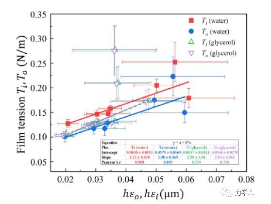 綜上所述,本文基于理論模型揭示了表面張力在調控液滴-薄膜體系平衡構型的作用機制,首次發現了薄膜張力隨薄膜鼓包角的非線性解析關系,以此完善了基于薄膜-液滴體系確定固體表面張力的方案,可用于對高分子材料表面張力的實驗測量和探索高分子材料表面張力與表面能的關系。