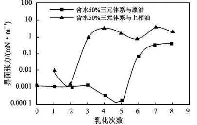 圖1水相與原油間界面張力隨乳化次數變化
